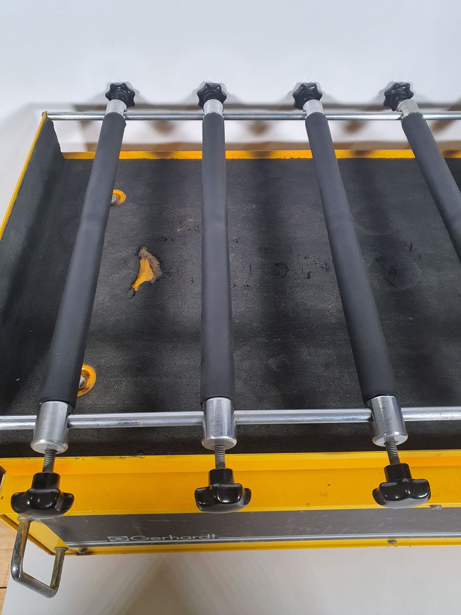 | Clamps / Holders | 3 support bars with clamps for vessels (likely up to 6 vessels) |