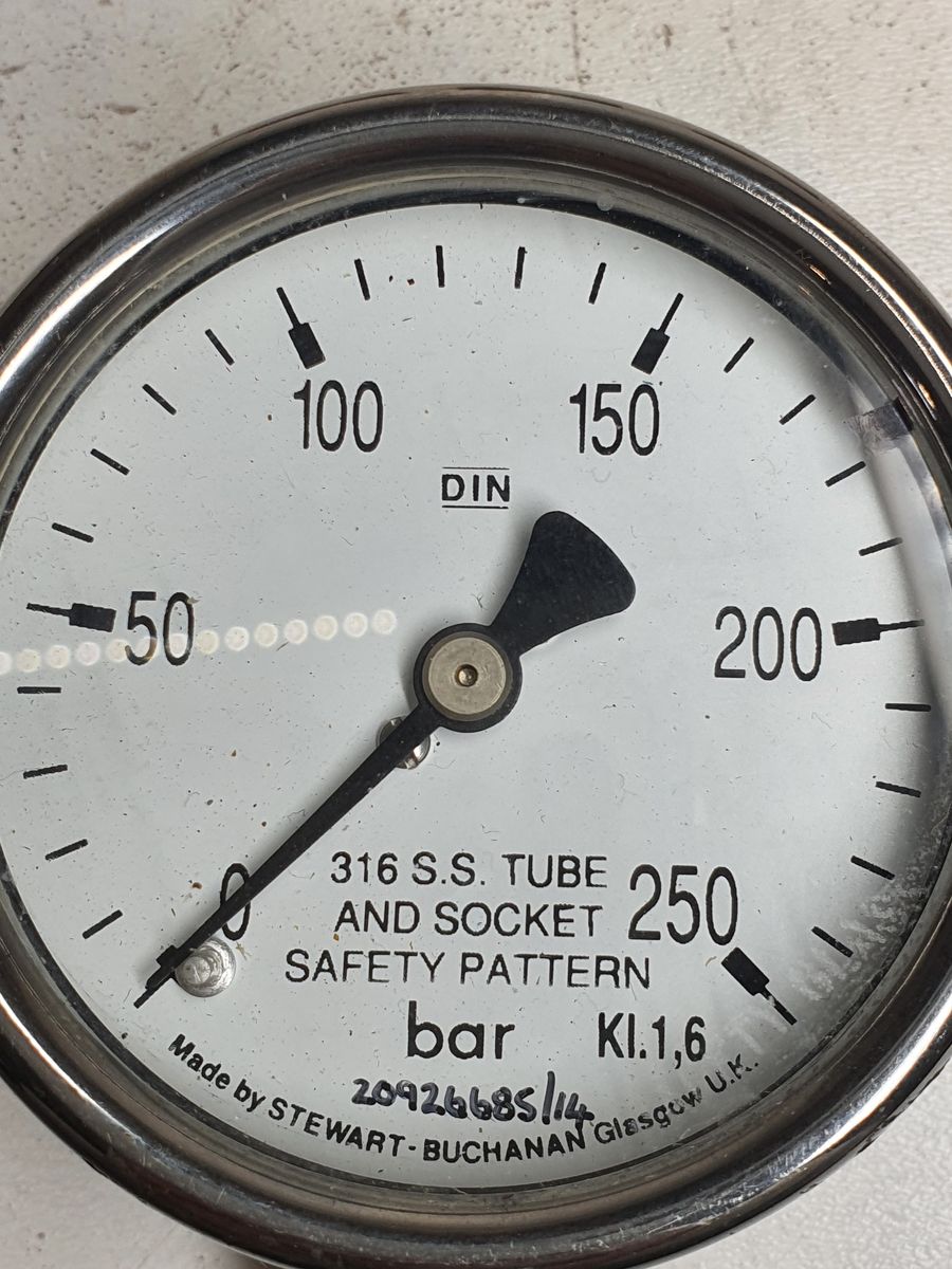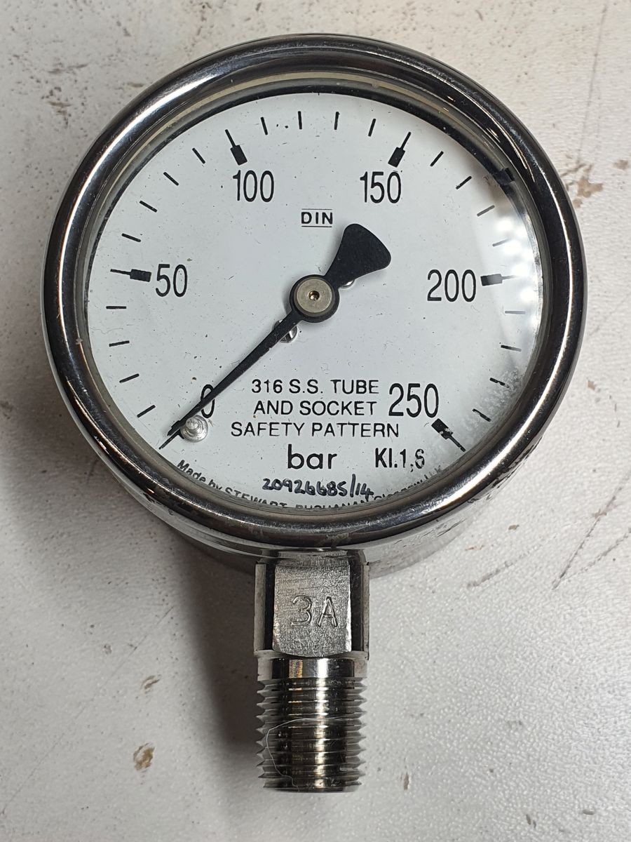 Stewart Buchanan Pressure Gauge 0-250 bar 1/4 NPT Male 63mm