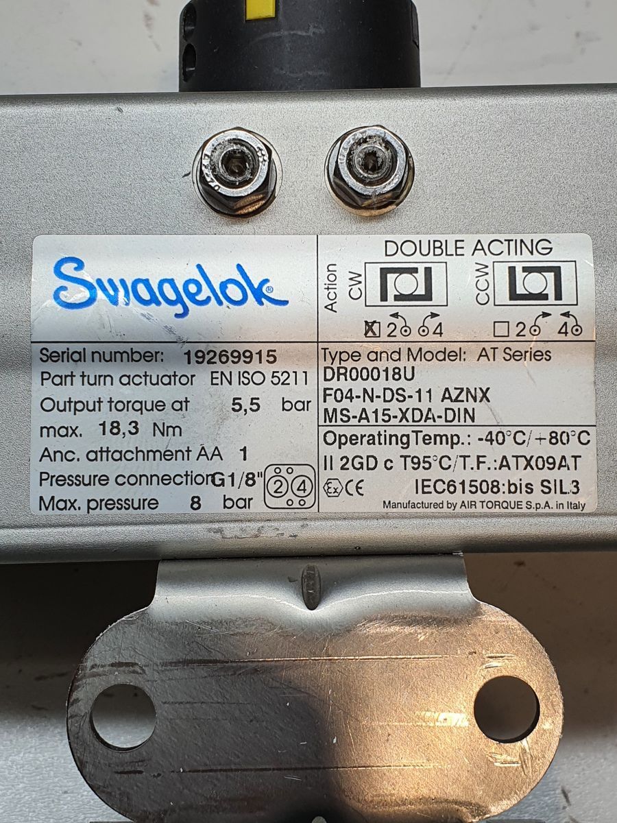Swagelok AT Series pneumatic rotary actuator