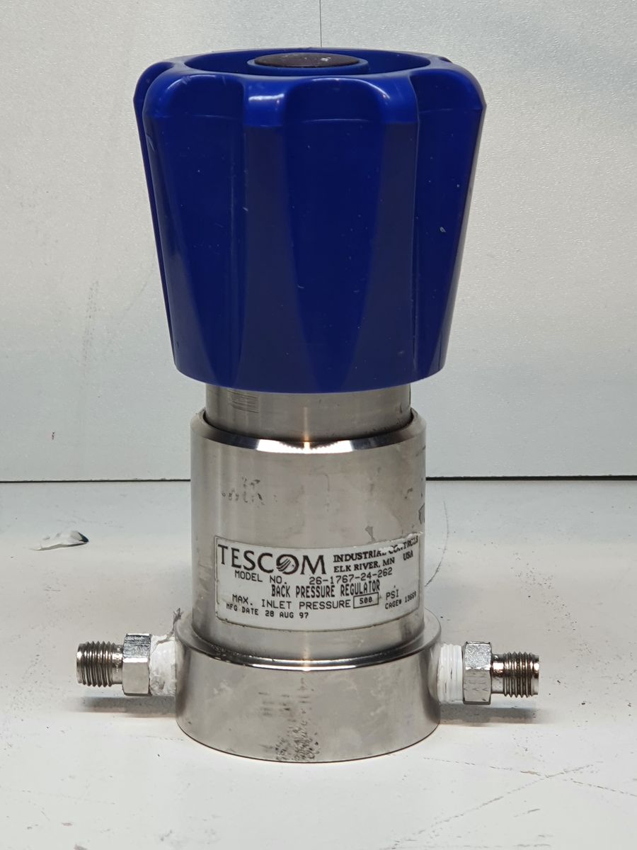 A precision pressure regulator designed to control and stabilize gas or fluid pressure downstream from a high-pressure source. Tescom regulators are commonly used in industrial process control, instrumentation, testing systems, and fluid power applications where accurate pressure regulation is required.